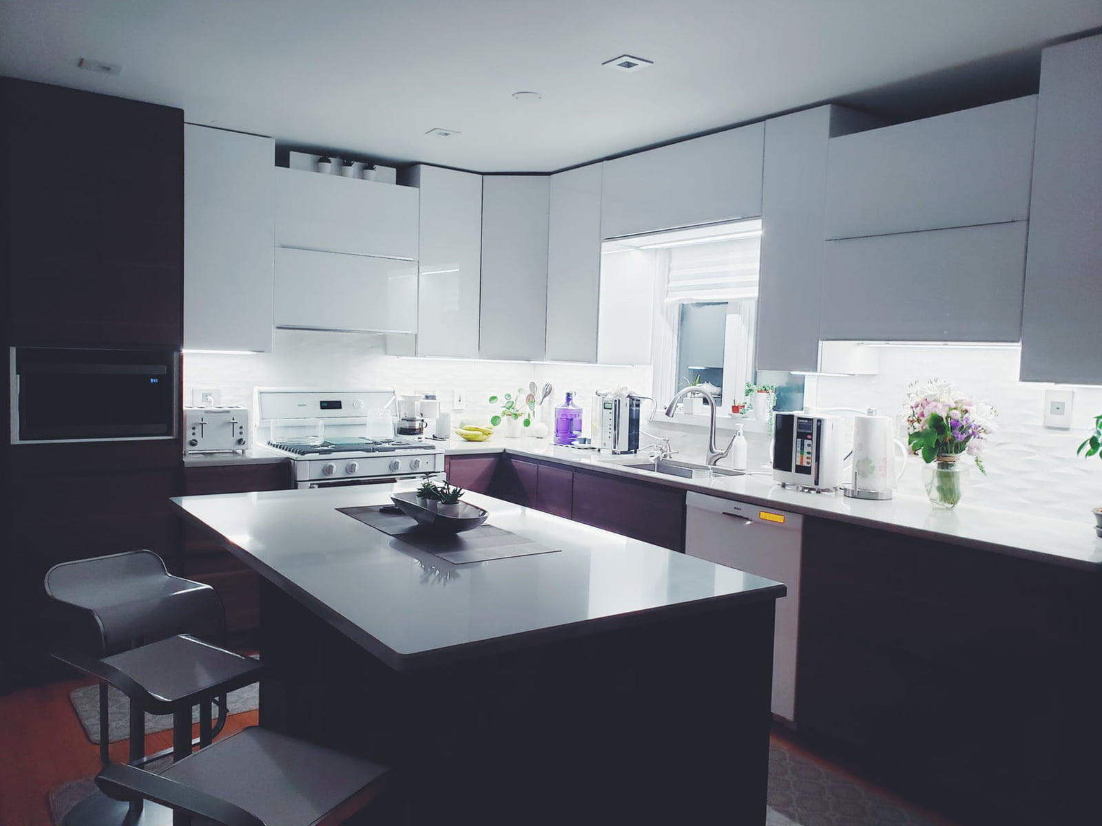Đối với gian bếp, gia chủ cần chú ý đến 3 yếu tố chính: tủ bếp, bếp nấu và hệ thống vòi rửa. Tủ bếp là công cụ đắc lực, giúp việc sắp xếp và lưu trữ gia vị, nguyên liệu khô và đồ gia dụng trở nên gọn gàng và đơn giản hơn. Gia chủ có thể kết hợp tủ chứa rượu, tủ kính trưng bày ly tách,.. để căn bếp trở nên sang trọng hơn. Tủ bếp nên được đo đạc kỹ càng trước khi lắp đặt, đảm bảo phù hợp với diện tích phòng.